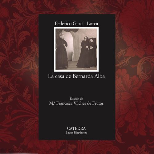 La portada de un libro negro titulado "La casa de Bernarda Alba" de Federico García Lorca.